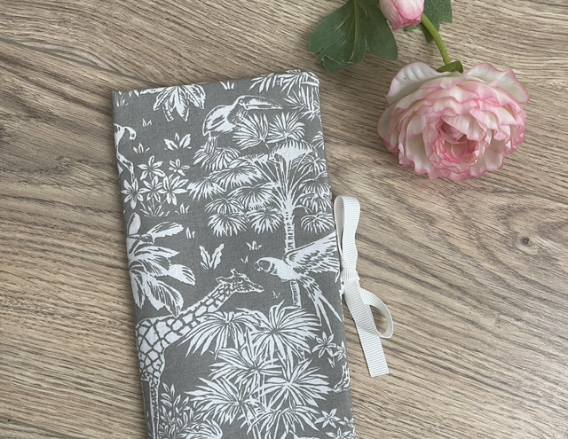 Il est en coton, comme la plupart de mes créations, il est lavable en machine à 30°, sans sèche linge, repassage doux et c'est reparti !!